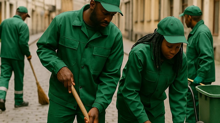 Aplinkos priežiūros darbai: žolės pjovimas, sniego kasimas, šiukšlių rinkimas.